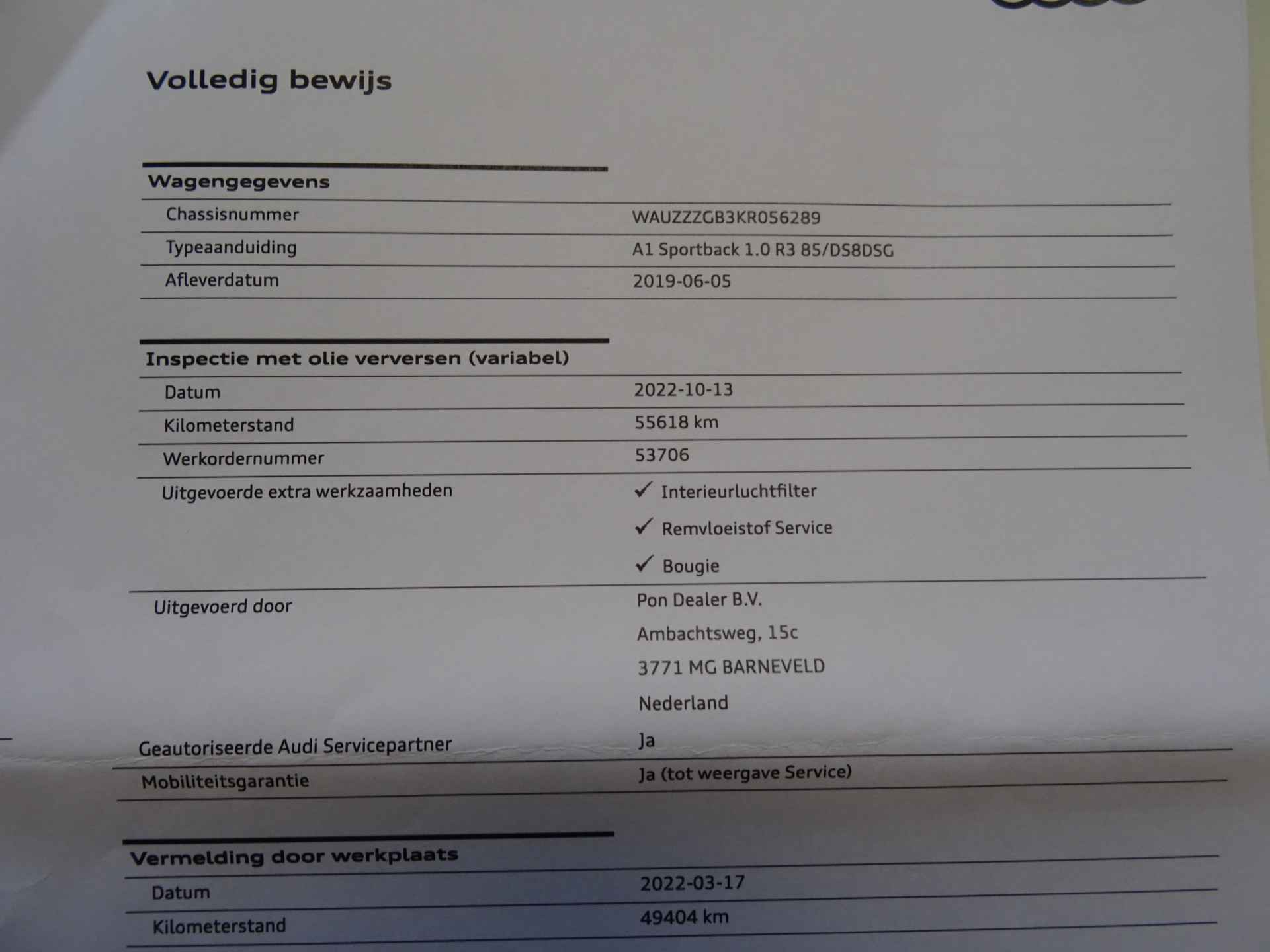 Dealer onderhouden, laatste service is bij 55Dkm uitgevoerd.