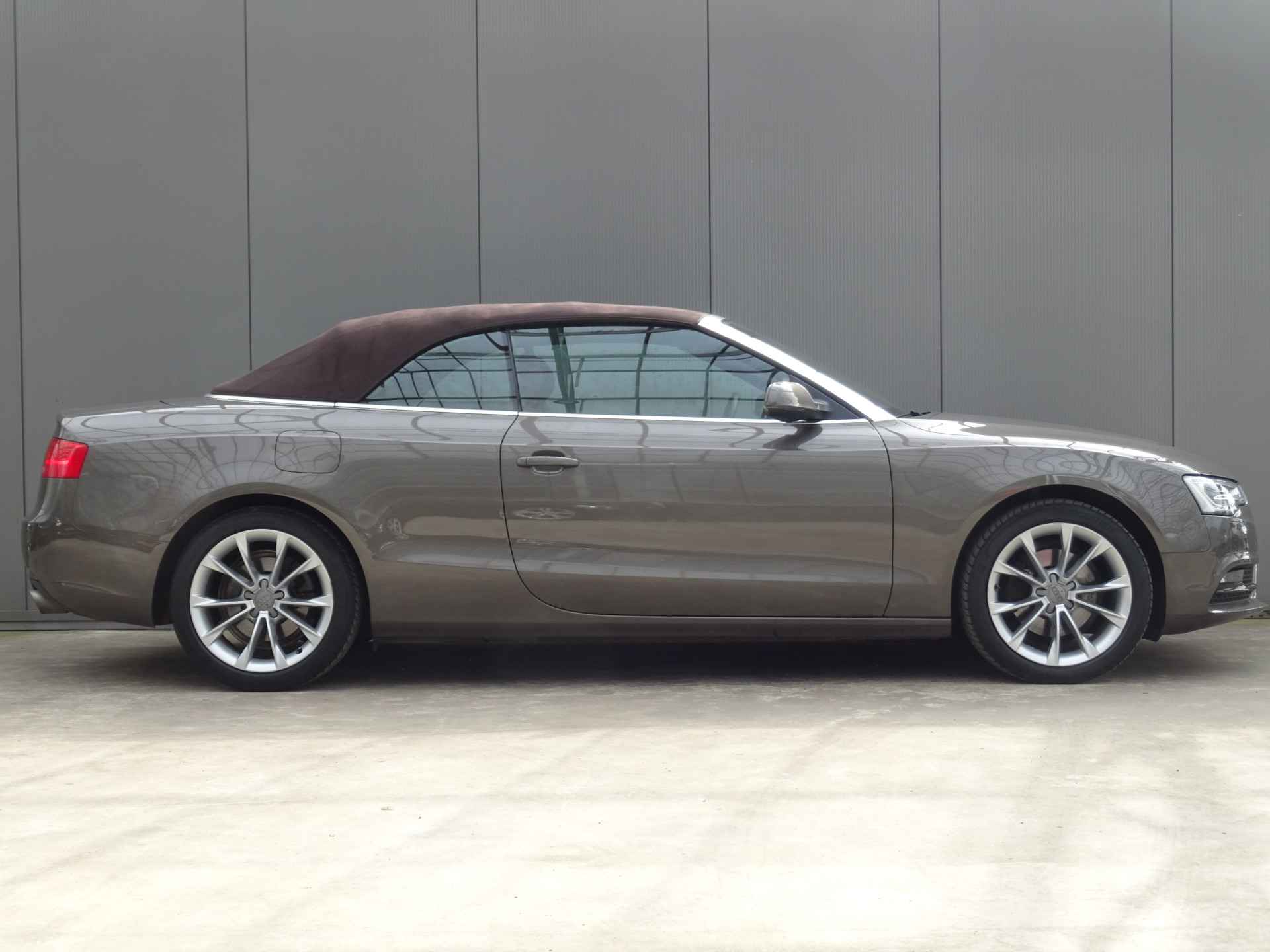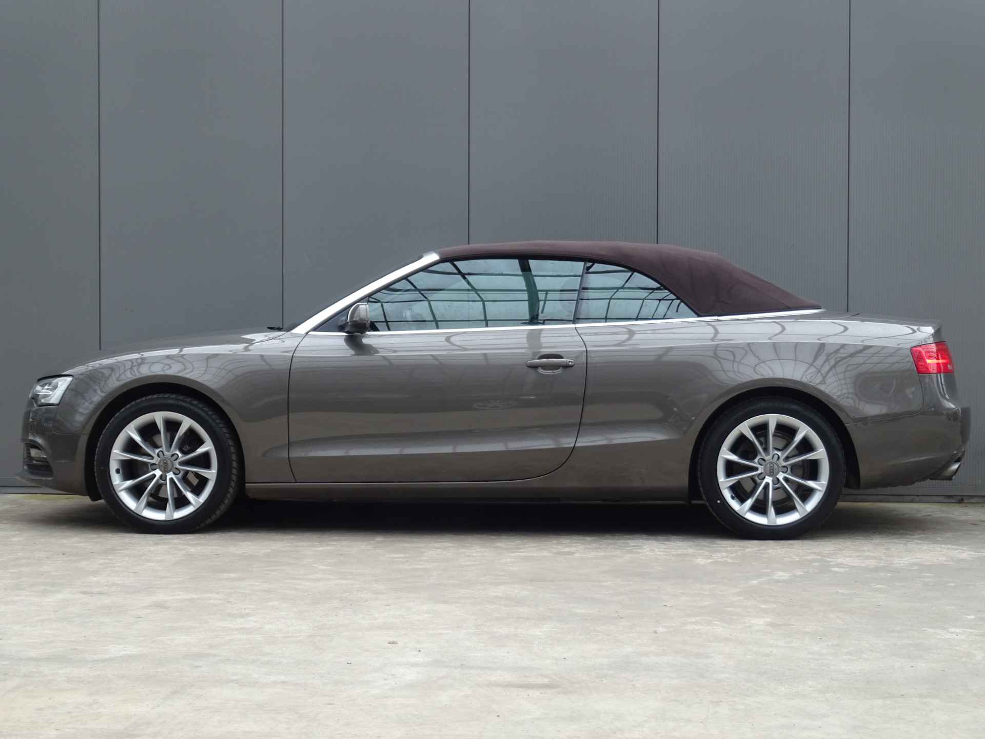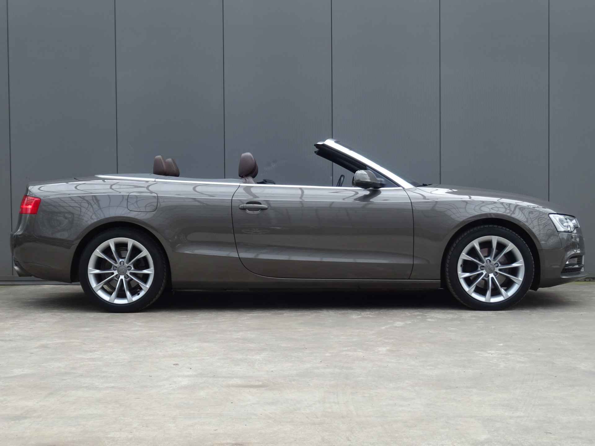 Zodra de zon zich laat zien, kunt u heerlijk genieten achter het stuur van deze cabriolet. U rijdt gemakkelijk, comfortabel en zonder zorgen met deze Audi A5 Cabriolet. Het is een auto van het bouwjaar 2013, hij heeft 95286 kilometer op de teller staan. De krachtige 170 PK benzinemotor van deze auto is gekoppeld aan een automatische transmissie. Van de diverse pluspunten is ook het lederen interieur het noemen waard. Dankzij de elektrische stoelbediening met memory is het gemakkelijk om de optimale zitpositie te vinden. Met deze auto gaat open rijden wel heel erg eenvoudig: het elektrische dak opent of sluit met een druk op de knop. Met de krachtige xenonverlichting rijdt u ontspannen in het donker. Natuurlijk behoren 18 inch lichtmetalen velgen en verstelbare lendensteunen ook tot de uitrusting van deze complete auto.