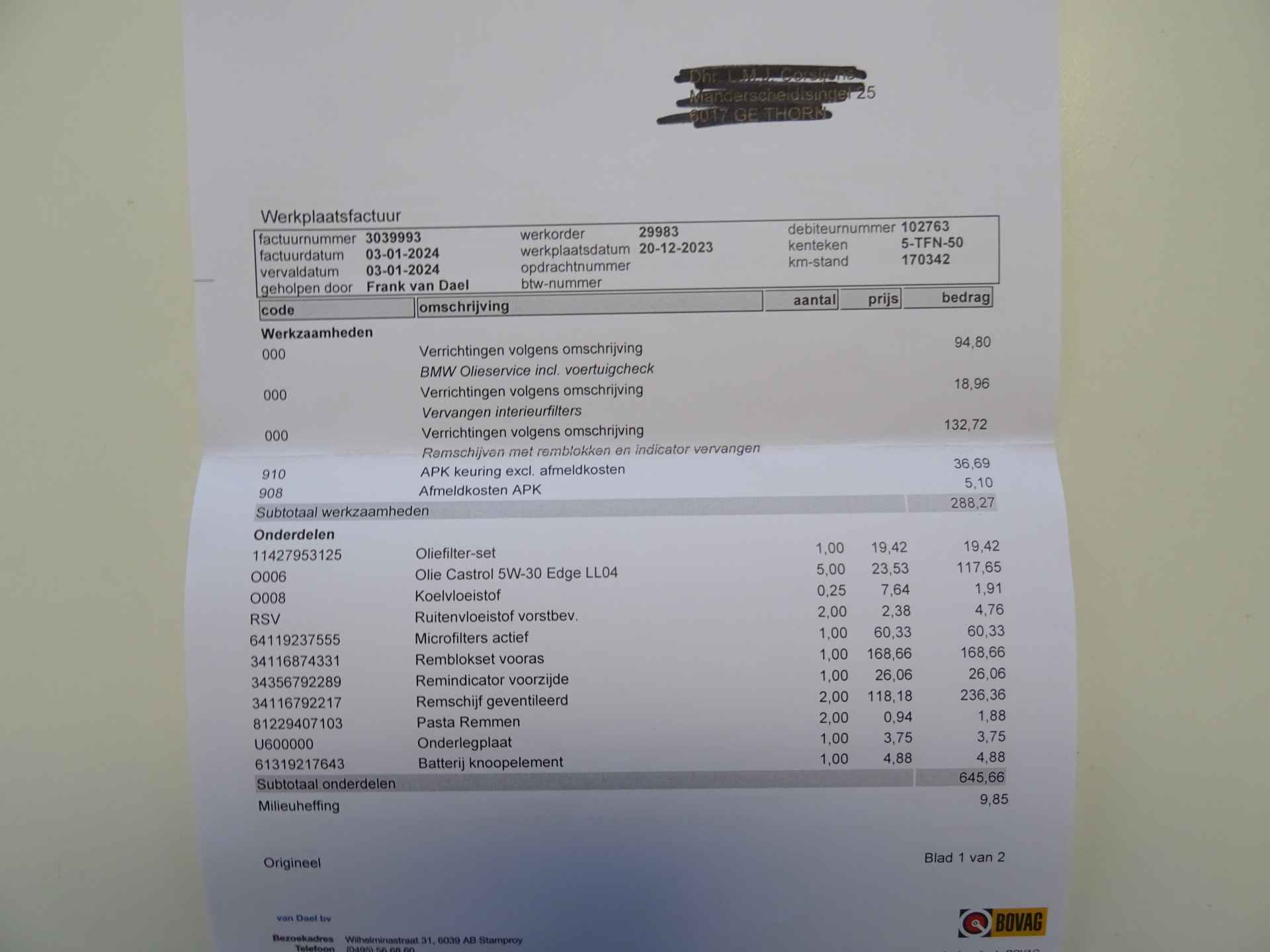 Personenauto diesel (all in) 55,00 inclusief afmeldkosten en roetmeting