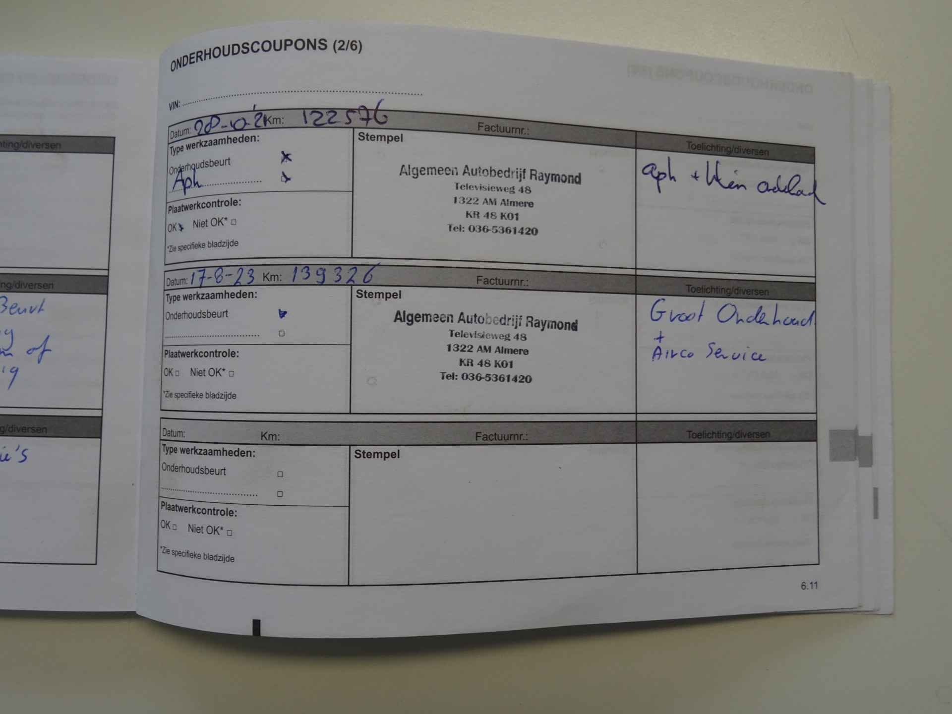 Laatste grote service beurt is bij 139Dkm uitgevoerd