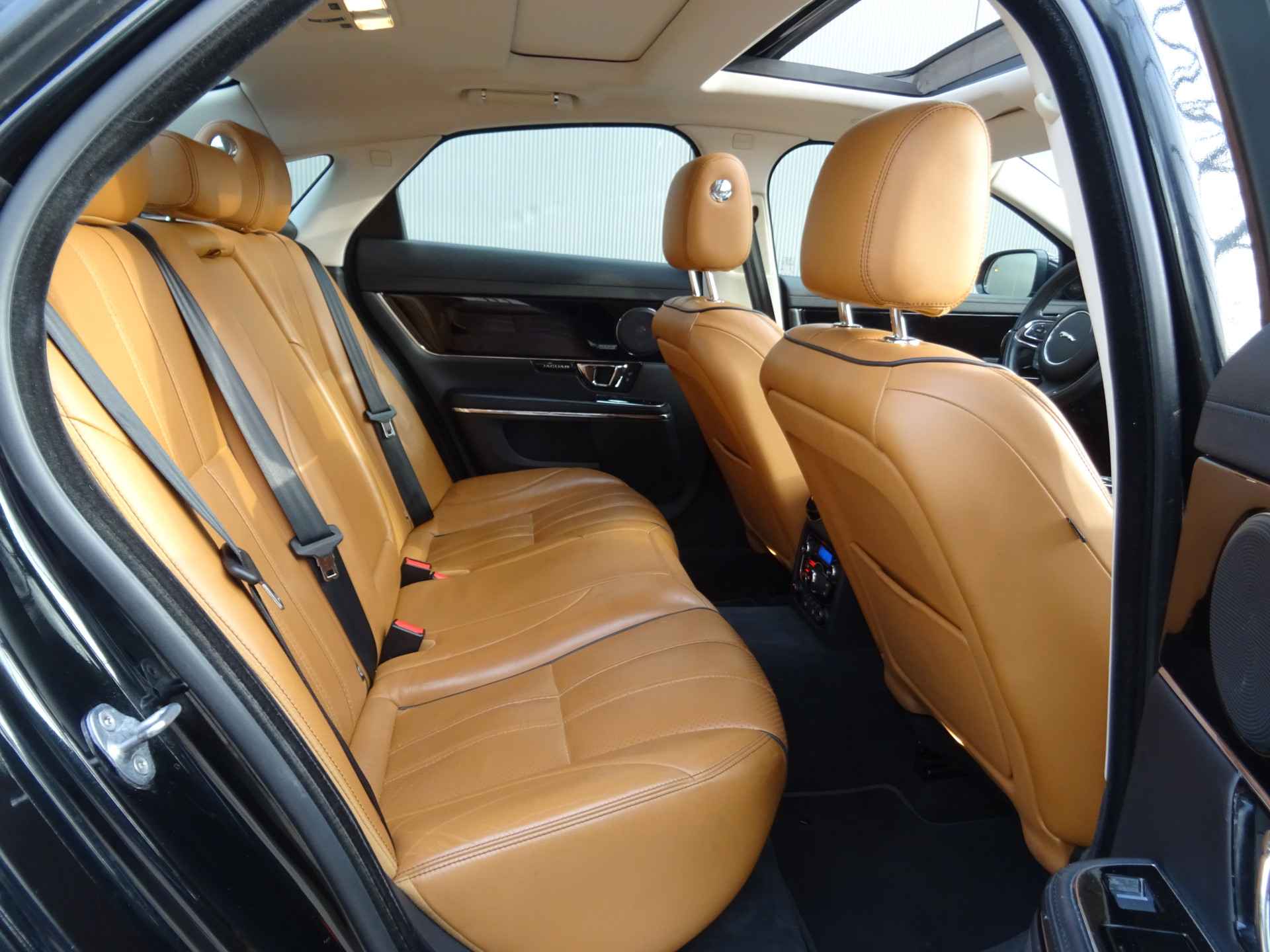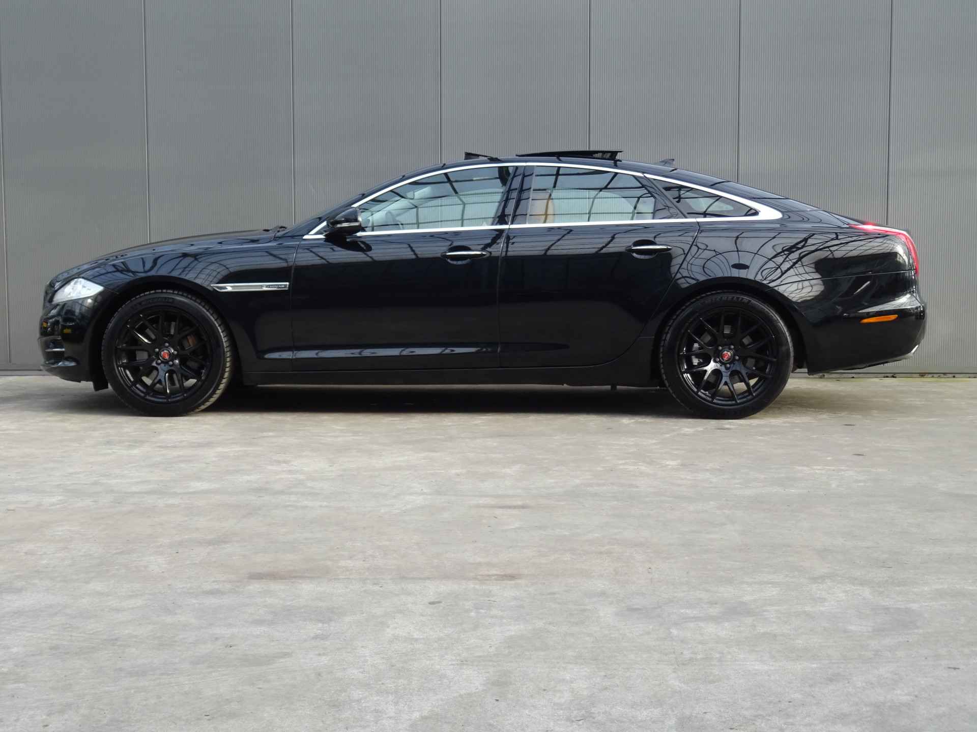 Bij de bouw van de Jaguar XJ wordt niets aan het toeval overgelaten. Vandaar dat hier een auto staat die in optimale conditie verkeert. De aandrijving van deze Jaguar wordt verzorgd door een 241 PK benzinemotor en een automatische transmissie. Basisuitvoering? Niks daarvan! Deze komt met lederen interieur, een elektrisch bediende glazen panorama dak en een elektrisch bedienbare achterklep. De verwarmbare en geventileerde voorstoelen met massage benadrukken nog maar eens dat we hier te maken hebben met een regelrechte verwenauto voor bestuurder en bijrijder. Ook de passagiers worden verwend, door de verwarmde en geventileerde achterbank. Xenonverlichting zorgt voor een heldere witblauwe lichtkleur en een scherp lichtbeeld. Bij de zeer complete uitrusting van deze auto behoren ook 19 inch lichtmetalen velgen met zgan Michelin banden en adaptief dempingsysteem.