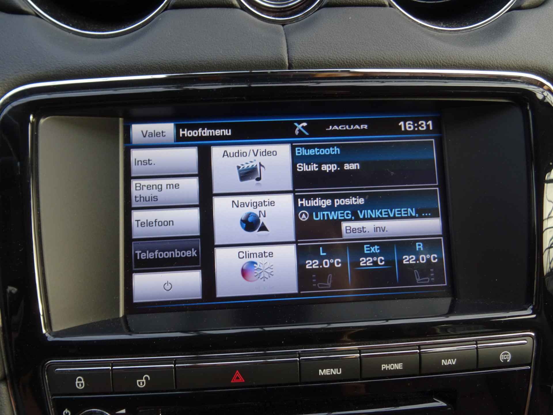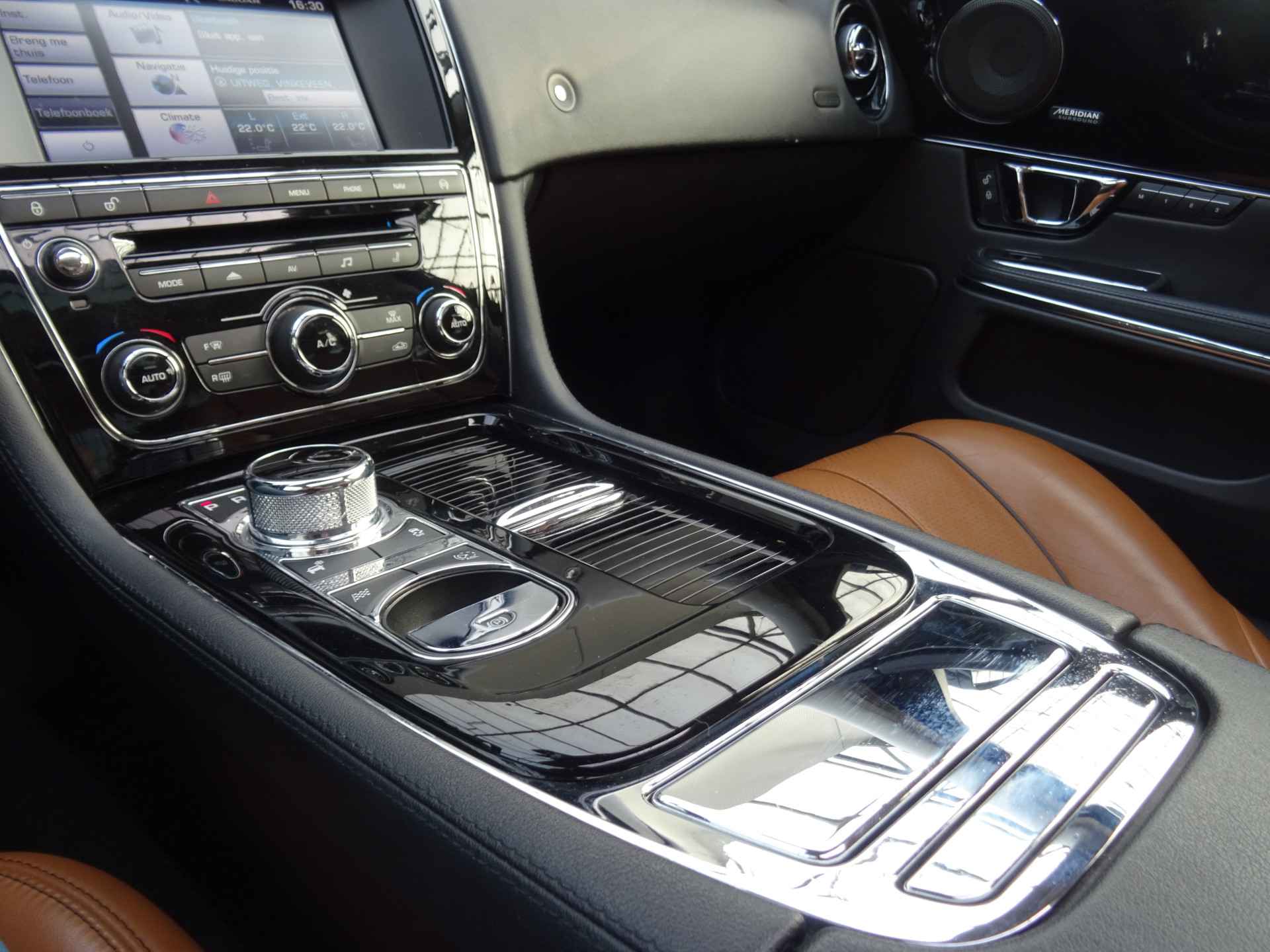 Alles vrij achter? De achteruitrijcamera laat het meteen zien. Het high performance Meridian audiosysteem staat garant voor een levendige en krachtige muziekweergave. De snelste of zuinigste weg? Het navigatiesysteem met harde schijf aan boord wijst de juiste weg! Met de electronic climate control selecteert u de gewenste temperatuur. Het systeem doet de rest. Met de ingebouwde regensensor kijkt u altijd door een schone en droge voorruit. De auto activeert de ruitenwissers volautomatisch. Deze Jaguar is voorzien van cruise control, keyless entry, automatisch dimmende buitenspiegels en centrale deurvergrendeling met afstandsbediening.