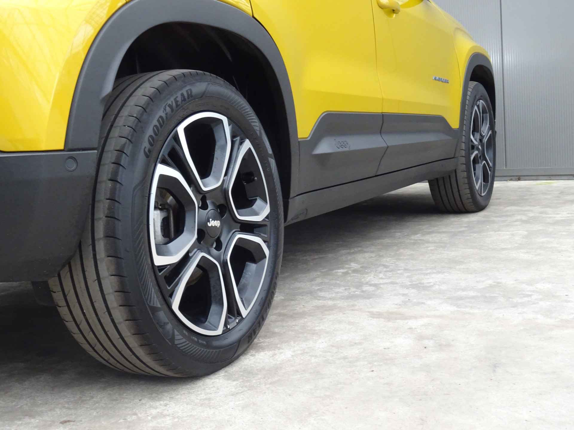 De rijbeleving is intuïtief. Het rijplezier is intens. Maak kennis met deze Jeep Avenger en laat u verrassen door zijn unieke karakter. CO2-uitstoot? Met de elektromotor rijdt u stil en schoon! De krachtige 157PK motor geeft deze Jeep uitstekende prestaties. Behaaglijk onderweg zijn? Als bestuurder geniet u van de verwarmbare voorstoelen. Net als uw bijrijder! De elektrisch bedienbare achterklep opent met een druk op de knop. Bij de uitrusting van deze Jeep horen onder meer 18 inch lichtmetalen velgen, LED koplampen, donker getint glas achter, in delen neerklapbare achterbank en LED-achterlichten.