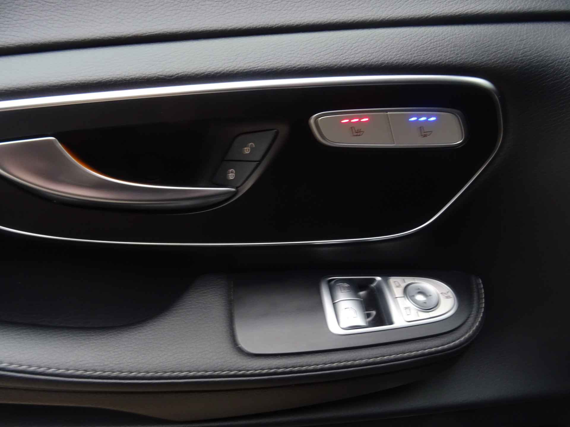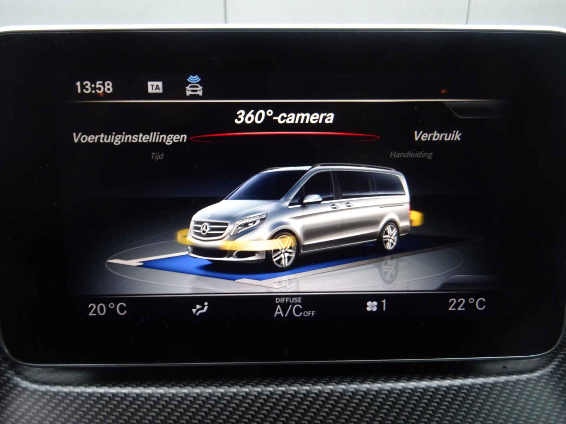 De vier camera's die samen de 360 graden camera vormen, bieden u de mogelijkheid om obstakels in elke richting te zien. Als u regelmatig met een aanhanger of een fietsendrager op pad bent, is de afneembare trekhaak een praktische extra. Het high performance audiosysteem van Burmester is volledig afgestemd op de akoestiek van de auto; genieten dus! Het comfort wordt verhoogd door de aanwezige automatische airconditioning. Een plekje vinden in de binnenstad is één, inparkeren is twee. Voor dat laatste heeft deze Mercedes-Benz V-klasse prima parkeersensoren die u een handje helpen. En deze auto heeft ook full map navigatiesysteem, regensensor, cruise control, buitentemperatuurmeter, automatisch dimmende buitenspiegels en lederen stuur als standaard uitrusting.