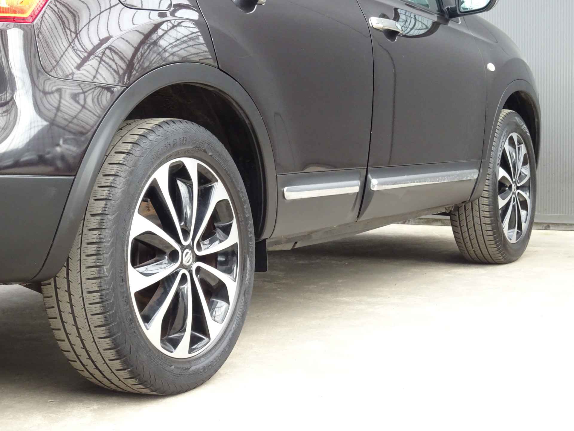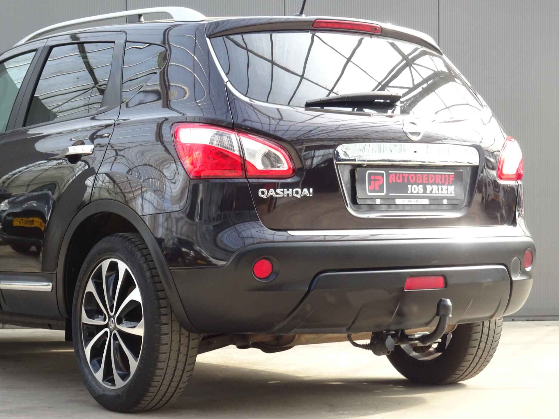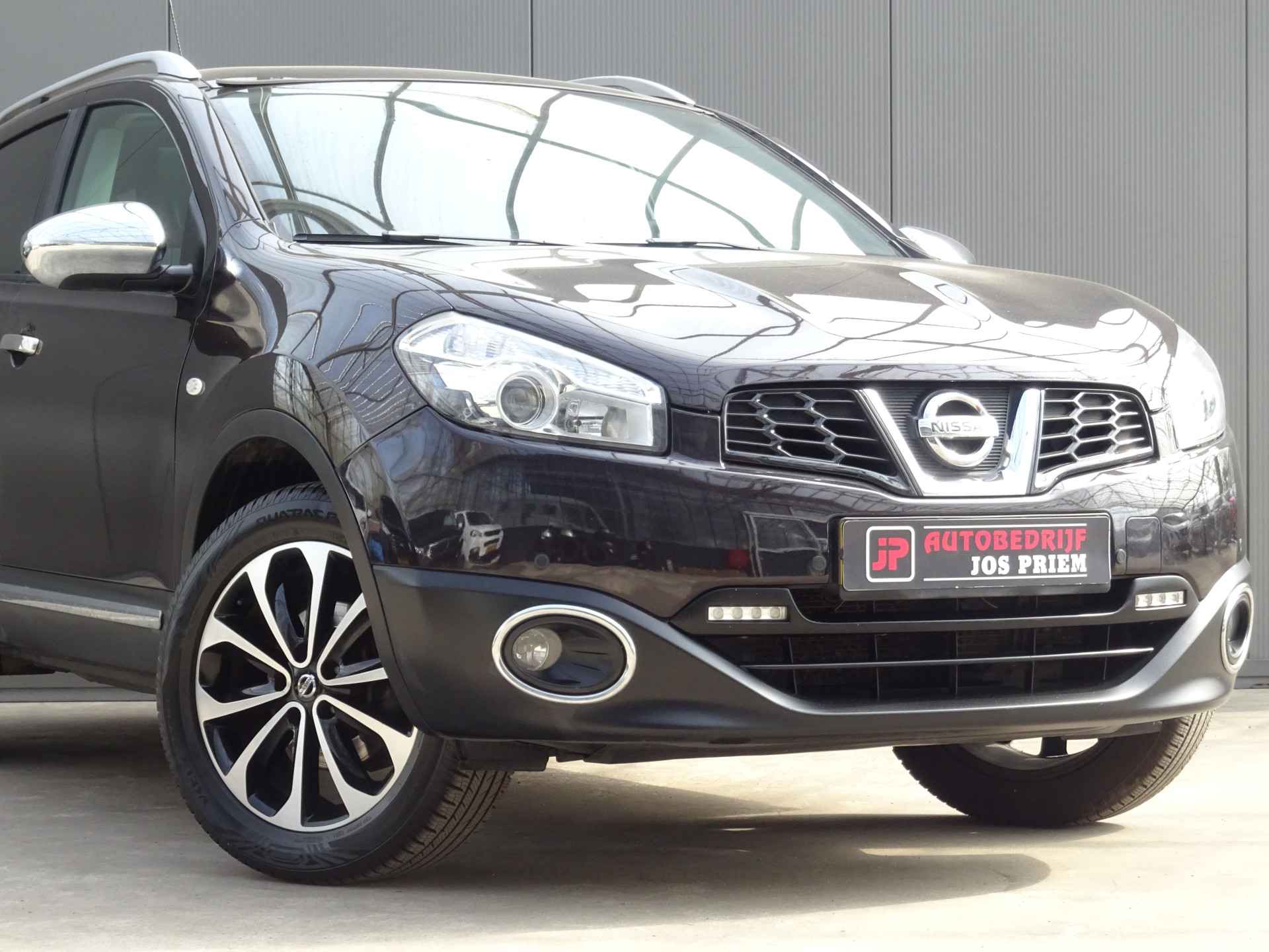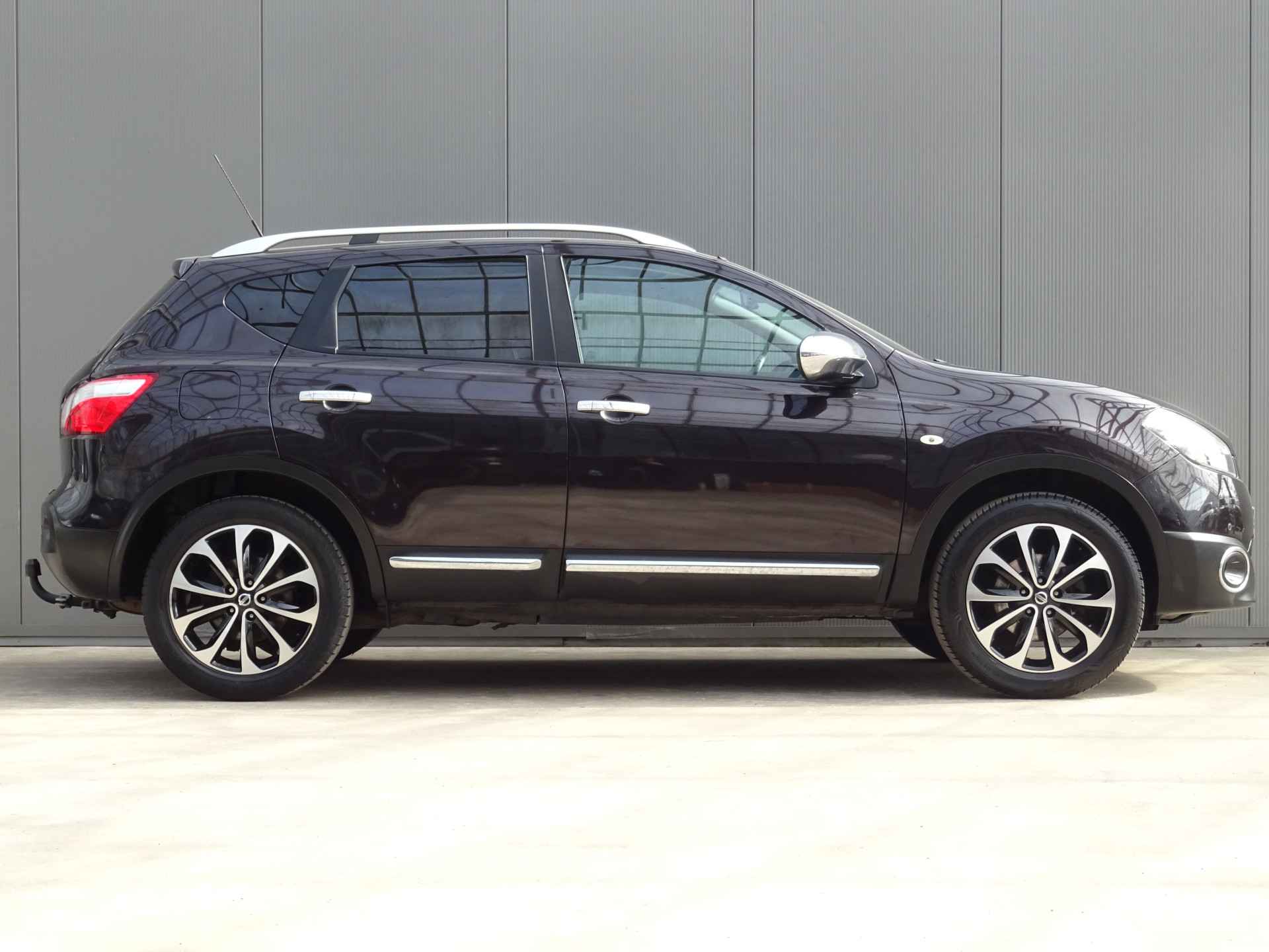 Uw nieuwe auto staat klaar voor vertrek. Stap gerust in, deze Nissan Qashqai heeft 206692 kilometer gelopen en is van het bouwjaar 2011. Voor de aandrijving van deze SUV zorgen een 142 PK benzinemotor en een automatische transmissie. Tijdens gure dagen is het prettig zitten in de verwarmbare voorstoelen. Het interieur baadt in een zee van licht door het glazen panoramadak. Bij de rijke uitrusting horen ook 18 inch lichtmetalen velgen, elektrisch inklapbare buitenspiegels, donker getint glas achter, verstelbare lendensteunen en elektrisch bedienbare ramen achter.