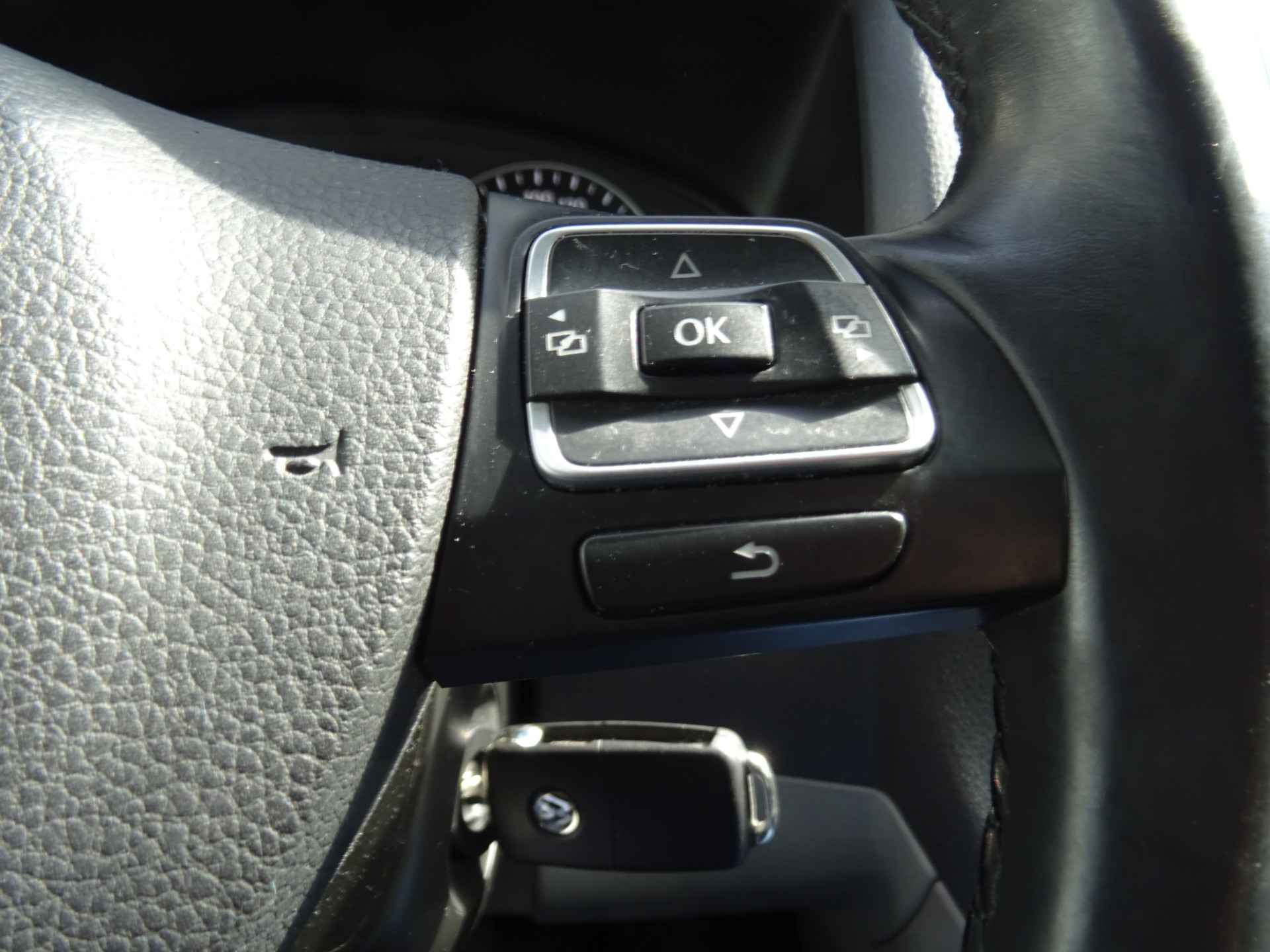 Audiosysteem en navigatiesysteem zijn gecombineerd. Zo wordt zelfs gesproken route-informatie een luisterervaring! En dankzij bluetooth klinkt uw favoriete playlist geweldig. Met de hulp van de parkeersensoren kost inparkeren en uitparkeren u geen enkele moeite. Het drukke verkeer eist onderweg al uw aandacht op. Daarom is het goed dat deze Volkswagen is voorzien van diverse systemen die u assisteren tijdens de rit. Een automatisch inschakelbare verlichting neemt het waar als het donker wordt of gaat schemeren, en schakelt dan automatisch de verlichting in. Op dezelfde manier "ziet" de regensensor de eerste spatjes regen en schakelt dan de ruitenwissers in, en als het harder gaat regenen zet hij de ruitenwissers ook in een snellere stand. Zuinig zoeven, dat kan deze auto dankzij de aanwezige cruise control. Het spreekt voor zich dat u in deze auto ook airconditioning aantreft. Wat u ook in deze auto kunt vinden zijn automatisch dimmende binnenspiegel, centrale deurvergrendeling met afstandsbediening en boordcomputer.